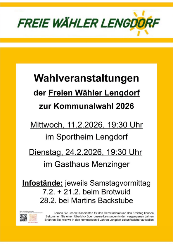 Kommunalwahl 2026 – Erfolgreiche Gemeindepolitik für Lengdorf fortsetzen